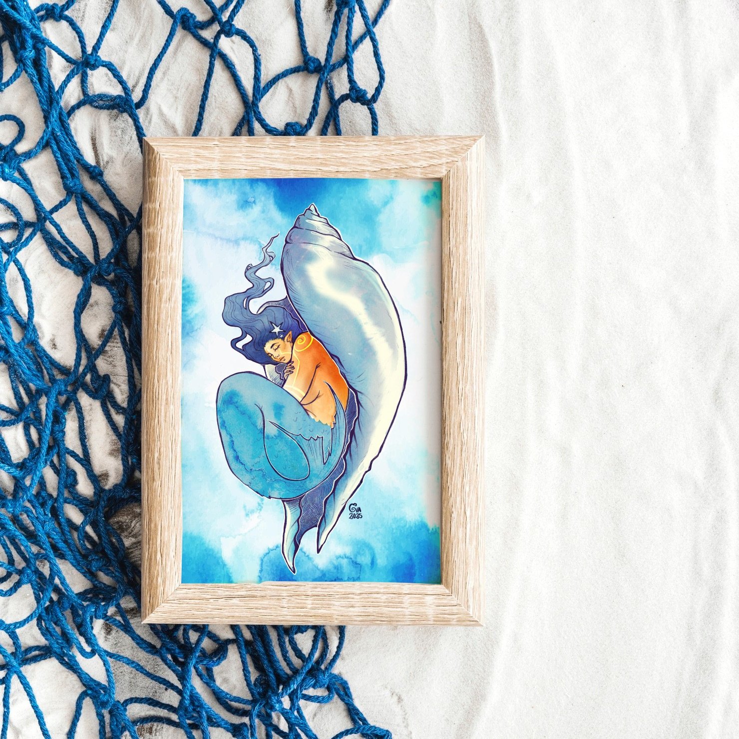 This is a high quality art print on mate 300gr paper, on A4 size (sheet) as displayed on the image. Printed in Spain.